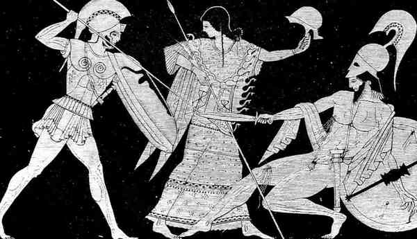 Pandaros fell for the goddess’s trick. He took aim and fired, but before his arrow could sink into Menelaus, Athena swatted it away. Menelaus and Agamemnon then declared that the Trojans had broken their oath. Accordingly, the Achaeans prepared for battle — that is, all the Achaeans except Achilles and his Myrmidons. The Olympian gods took sides and marshaled with their respective favorites. Athena joined the ranks of the Achaeans while Hera wished them well from the heavens.